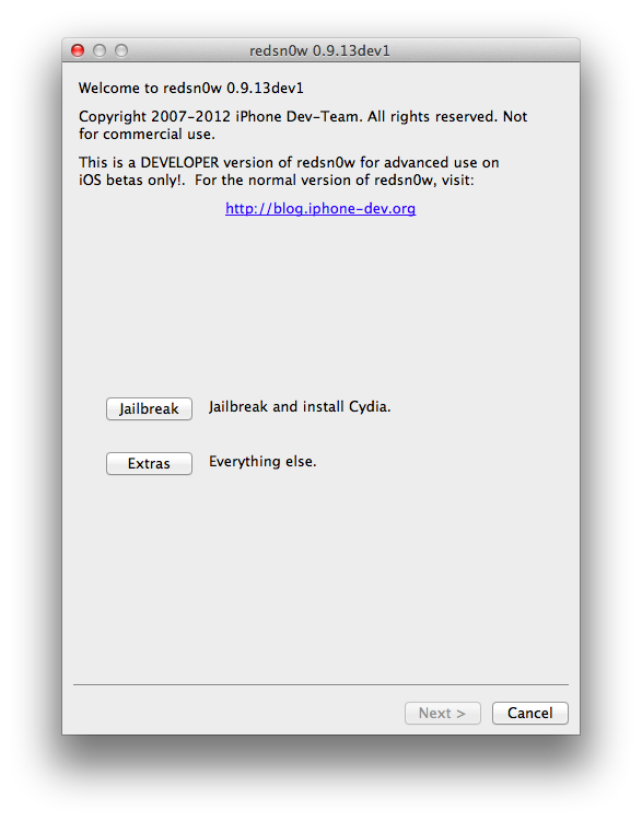 Just like at the at the wind-down of last year's WWDC, we're releasing a developer-only version of a redsn0w tethered jailbreak for app developers.