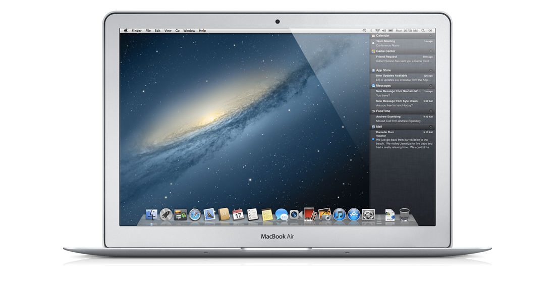 Mountain Lion presents notifications in an elegant new way, and Notification Center provides easy access to alerts from Mail, Calendar, Messages, Reminders, system updates and third party apps. System-wide Share Sheets make it easy to share links, photos and videos directly from Apple and third party apps. Twitter is integrated throughout Mountain Lion so you can sign on once and tweet directly from Safari, Quick Look, Photo Booth, Preview and third party apps. Mountain Lion also introduces AirPlay Mirroring, an easy way to wirelessly send a secure 720p video stream of what's on your Mac to an HDTV using Apple TV.
